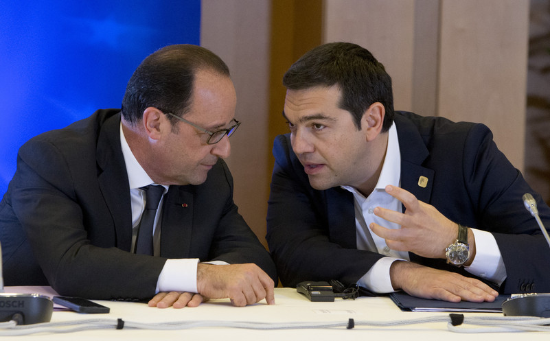 Greek PM Alexis Tsipras (r) and French president Francois Hollande (l) at the euro summit in Brussels. Further work is needed before an agreement is reached. (Photo: Consillium)