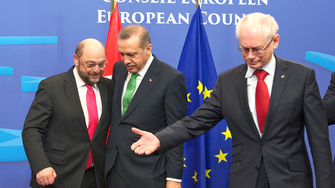 She also avoided questions on Turkey’s crackdown on civil liberties, saying only that EU accession talks can help “reinforce” Turkish reforms.