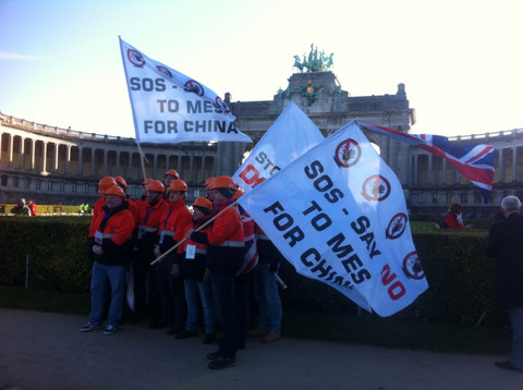 Thousand of steel workers protested in Brussels against Chinese dumping of cheap goods, as opposition to the EU granting China market economy status grows.