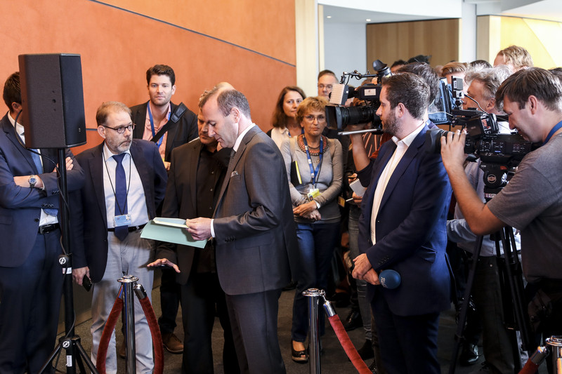 Dozens of EU correspondents and European Parliament officials had gathered in one of the parliament's many corridors on Wednesday (5 September), when Manfred Weber arrived.