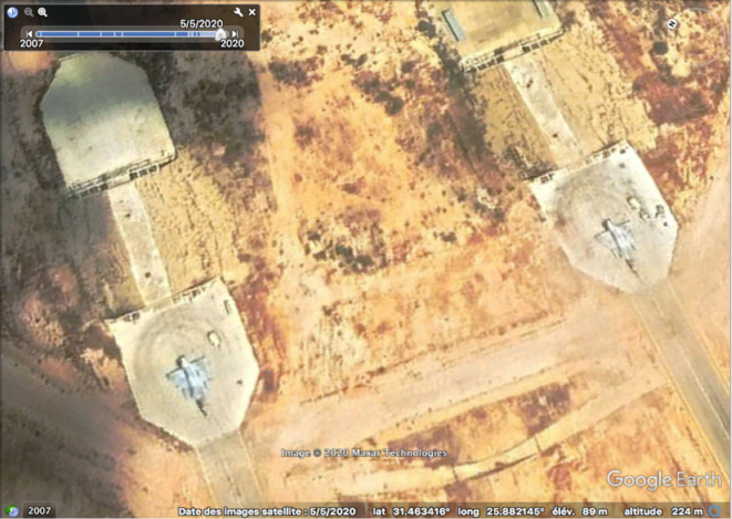 Two French-built Mirage jet fighters, operated by the UAE, at the Sidi Barran airbase in Egypt (Photo: Satellite image ©2020 Maxar Technologies)