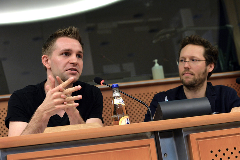 Max Schrems, a 28-year-old Ph.D law student at Vienna University, took on Facebook for privacy violation. Here in the European Parliament with Green MEP Jan Philipp Albrecht- (Photo: Martin Hanzel)